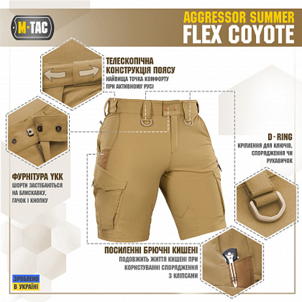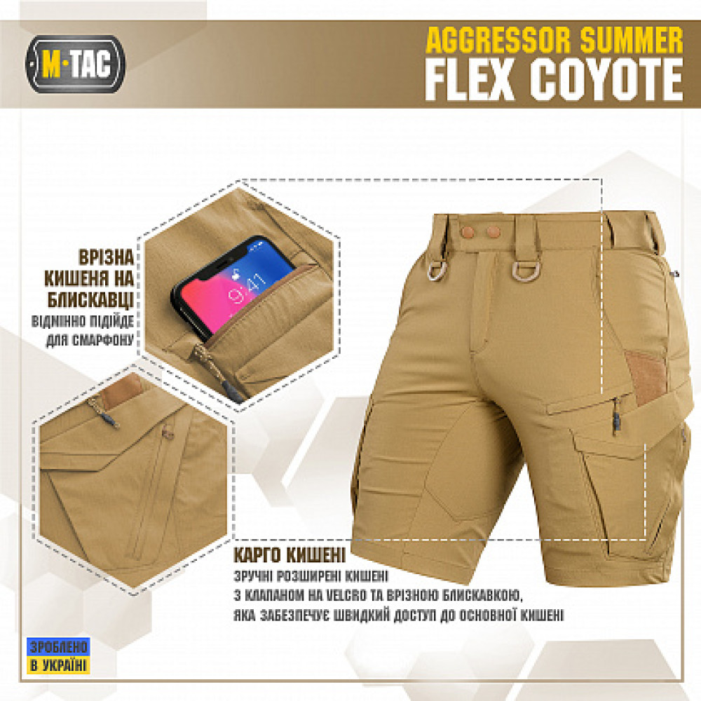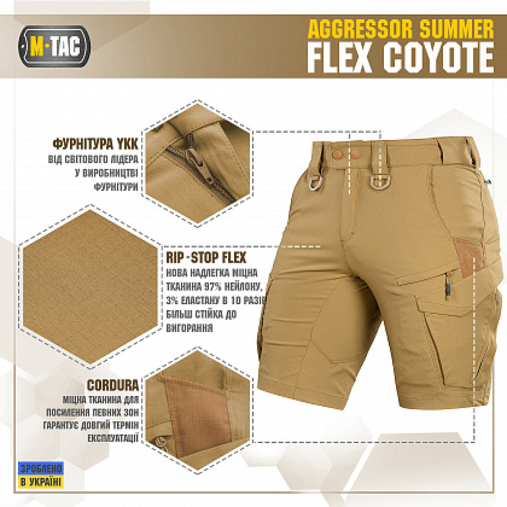 Основные характеристики M-Tac шорты Aggressor Summer Flex Coyote