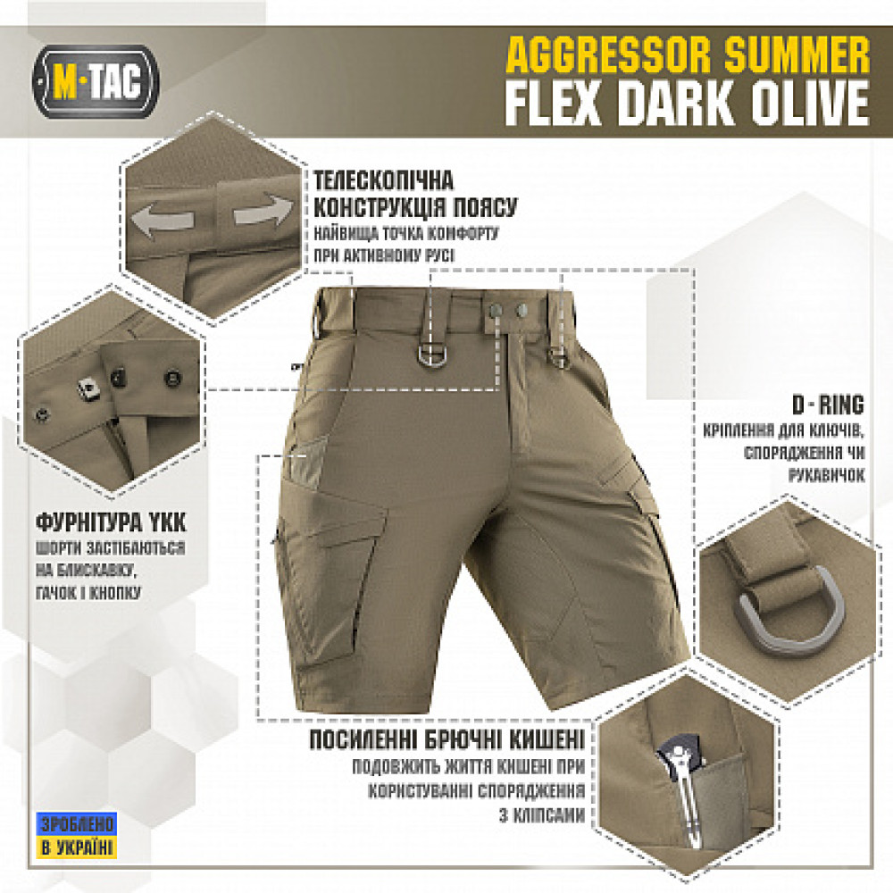 Описание M-Tac шорты Aggressor Summer Flex Dark Olive