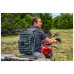 Конструкция предусматривает основное и три дополнительных отделения. В самом большом отделении есть специальный мягкий карман для ноутбука 15", а на противоположной стороне два вместительных сетчатых кармана на молнии для аксессуаров. Передний накладной карман-органайзер полностью открывается, что обеспечивает удобный доступ различных мелочей. На передней панели сверху есть небольшой карман, куда удобно разместить среднего габарита вещи, к которым нужен оперативный доступ. Для хранения очков предусмотрено специальное мягкое отделение, которое находится между верхней ручкой и лямками рюкзака. Под спинкой расположено отделение для гидратора с обновленным, более эргономичным выводом трубки. Также, в этом отделении удобно хранить документы или блокноты, ведь всегда можно быть уверенным, что они на месте. Внешняя часть рюкзака оснащена контурной системой Molle для размещения подсумков на передней панели, торцах или даже лямках. Еще в торцах рюкзака, под панелями Molle, расположены карманы на молнии, которые подойдут для размещения плоского и длинного снаряжения. Компрессионные ремни по бокам дают возможность уменьшить габариты рюкзака при его неполной загрузке для комфортной фиксации на спине.