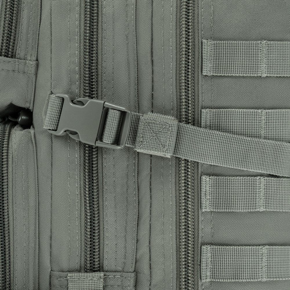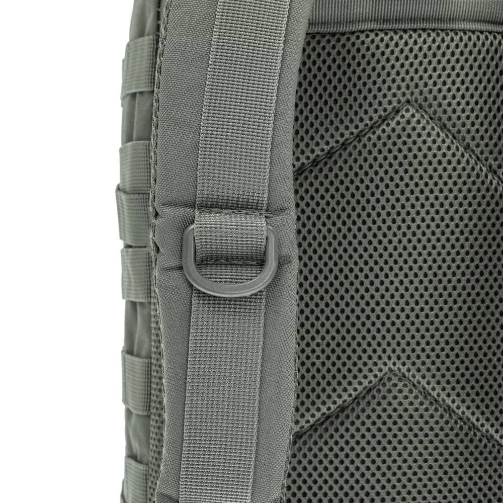 Важливою частиною цього рюкзака є безліч точок кріплення спорядження з чотирьох сторін завдяки системі «MOLLE». Окрім цього для кріплення спорядження можна використовувати стропи з фастексами й затяжками по боках і знизу. Широкі плечові лямки мають ширину 55 мм і гарантують комфортне тривале використання. До того ж тут прикріплено два D-подібних кільця для кріплення дрібних речей. Поясна система представлена фастексом і двома затяжками з широкими стропами, які разом регуляцією плечових лямок, зроблять максимально комфортною посадку рюкзака по фігурі й зросту. Спинка забезпечує відмінну вентиляцію в найрізноманітніших умовах завдяки своїй конструкції й застосованим матеріалам.