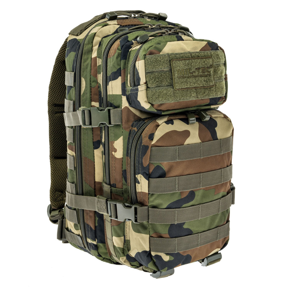 Компактний рюкзак ASSAULT S, Woodland в стилі мілітарі від німецького бренду Mil-Tec. Така модель чудово підійде для щоденного міського використання або на природі любителям активного способу життя.